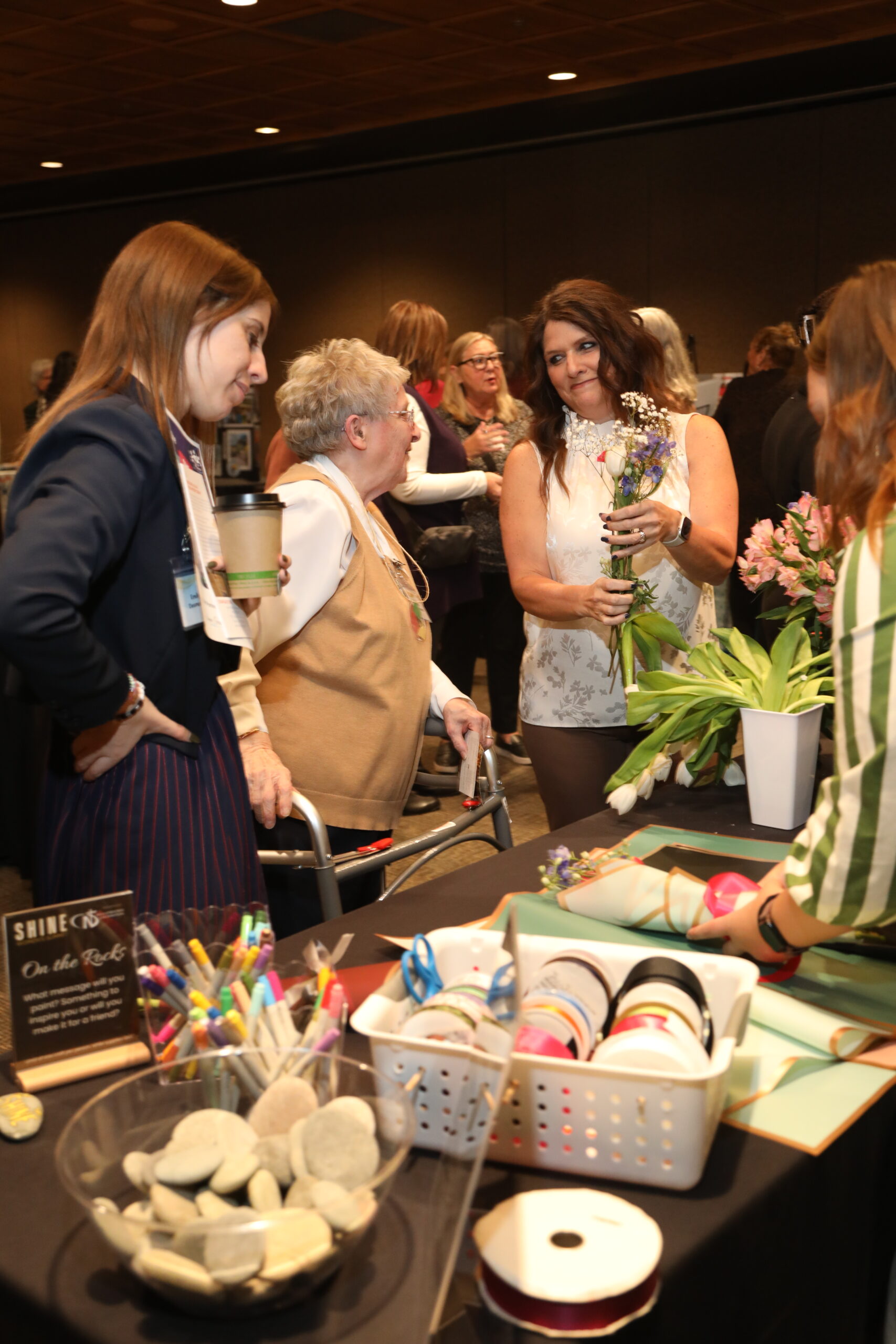 Prior to the speakers’ program, guests enjoyed an art show with works created by sisters and students and visited the Nonprofit Expo which showcased the ministries of 18 organizations whose work aligns with the mission of the Sisters of Notre Dame.