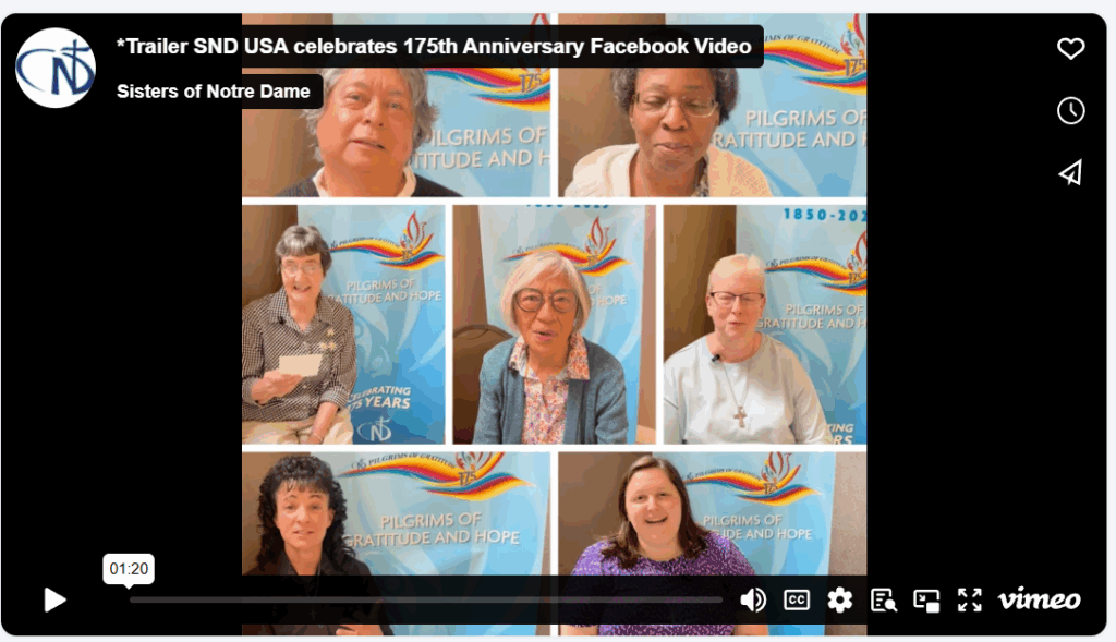 Wednesday, October 1 is Foundation Day for the Sisters of Notre Dame, and we will be celebrating 175 years since our founding. In the words of Sr. Mary Ann Culpert, our Superior General, “We thank and praise our God’s goodness and provident care in sustaining us these 175 years and using us as instruments in transforming the world and co-creating